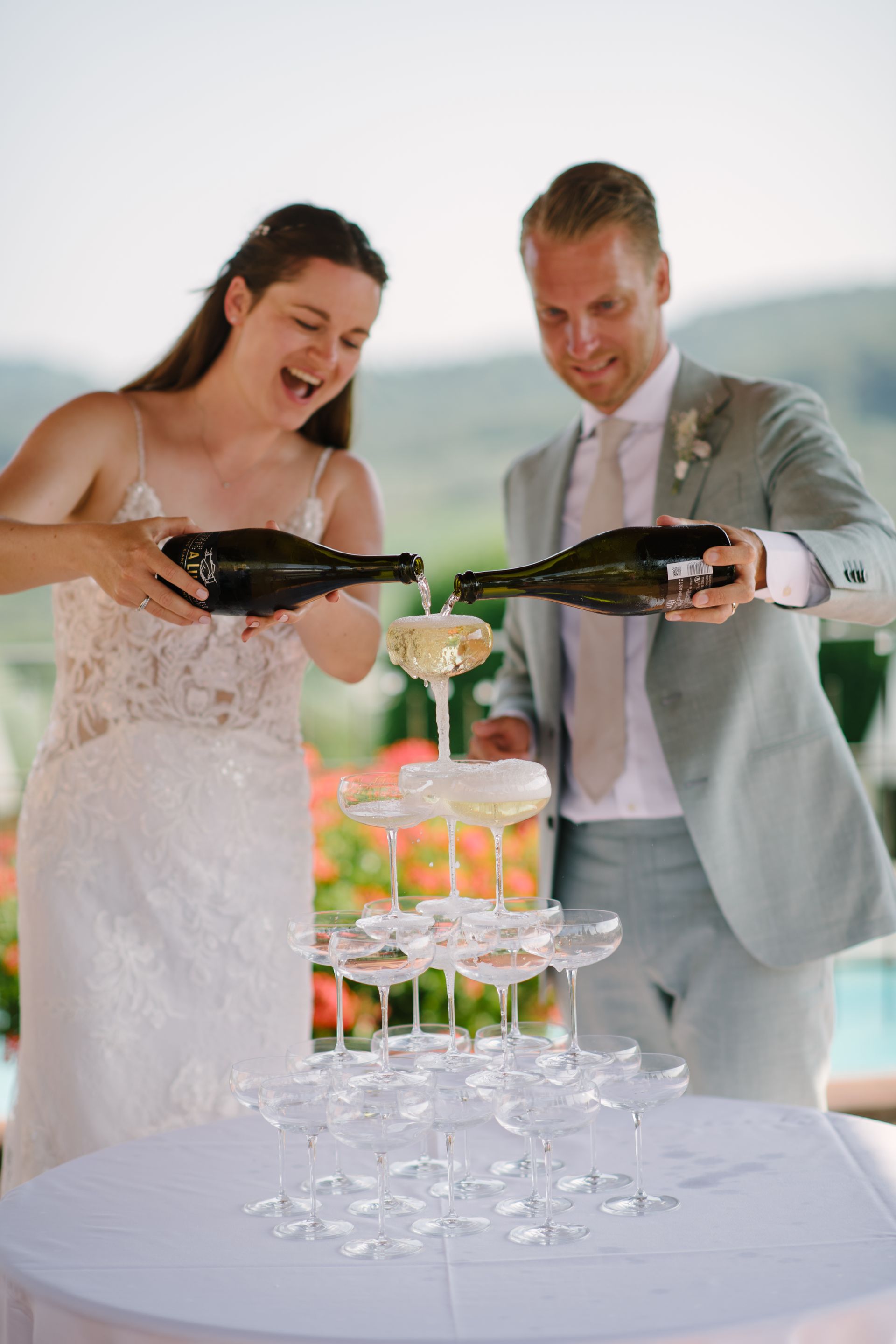 to a sparkling prosecco tower.